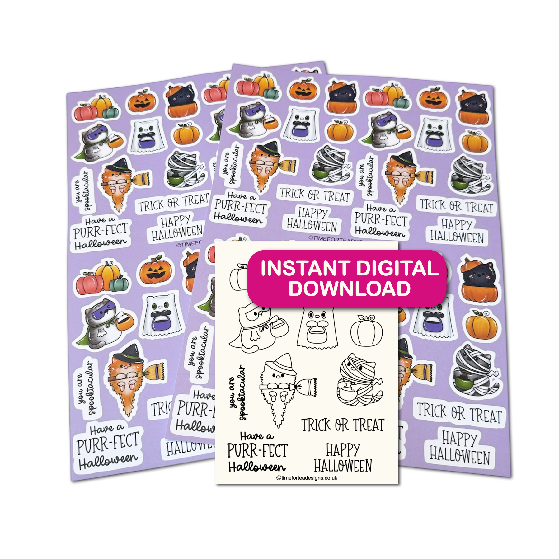 Purr-fect Halloween A4 Printed Cardstock Pack of 2 with Free Digi Stamp